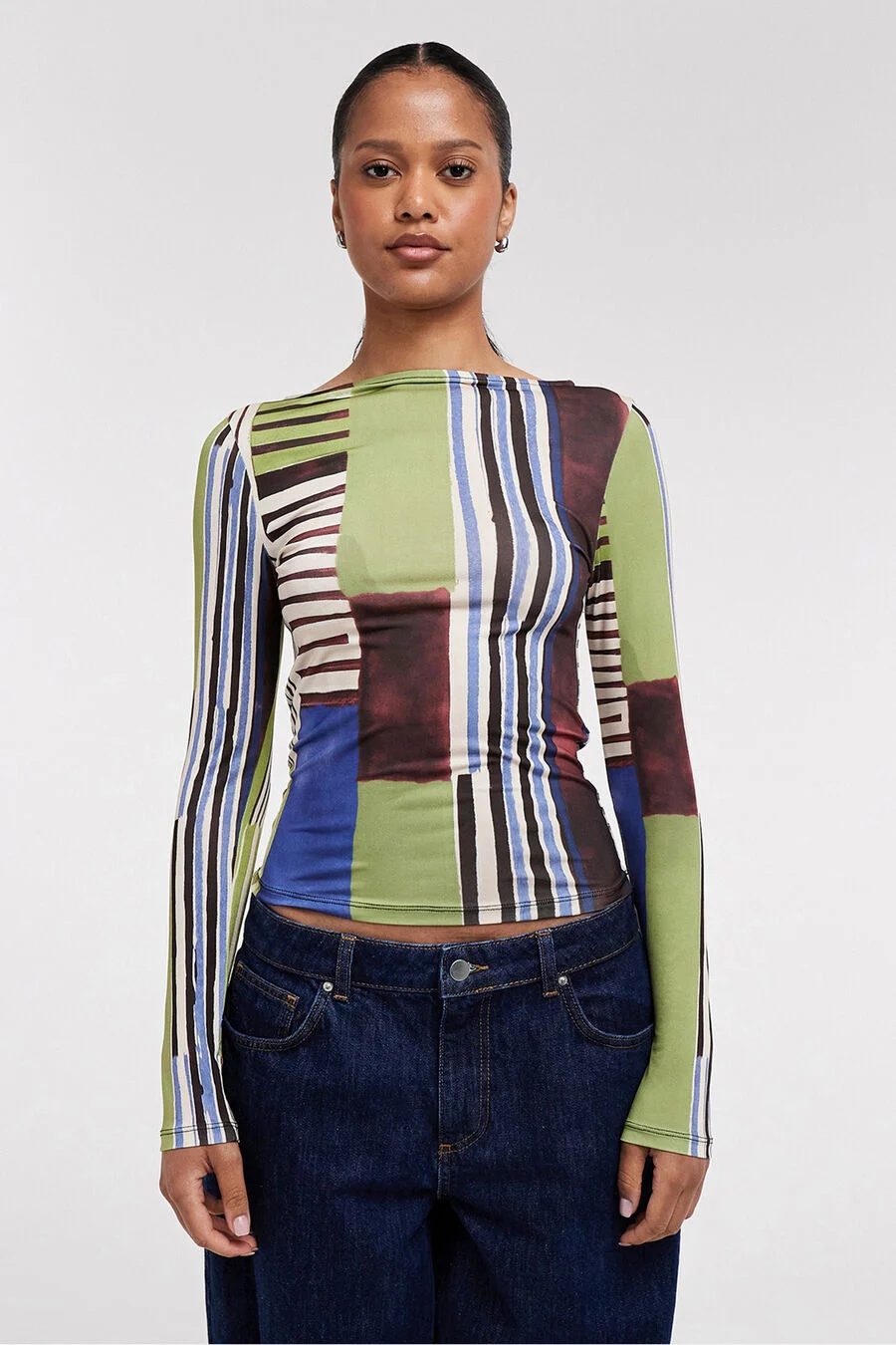 Patchwork de algodón reciclado que proporciona un tacto suave y agradable, además de buena durabilidad para el uso diario. Es ideal para quienes buscan una prenda diferente, con carácter y alineada con una moda más consciente, diseño exclusivo y moderno.
